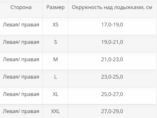 Подбор размера голеностопного бандажа:
