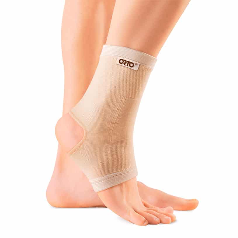 Голеностопный ортез эластичный циркулярный с открытой пяткой из гипоаллергенной нити с керамическим напылением.