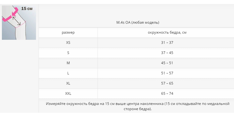 | Измеряйте окружность бедра на 15 см выше центра наколенника (15 см откладывайте по медиальной стороне бедра). | ||