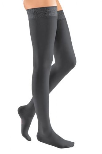 Компрессионные чулки 2-ого класса компрессии mediven elegance на широкое бедрос кружевной резинкой на силиконовой основе для женщин, заботящихся о здоровье вен и стильном внешнем виде.