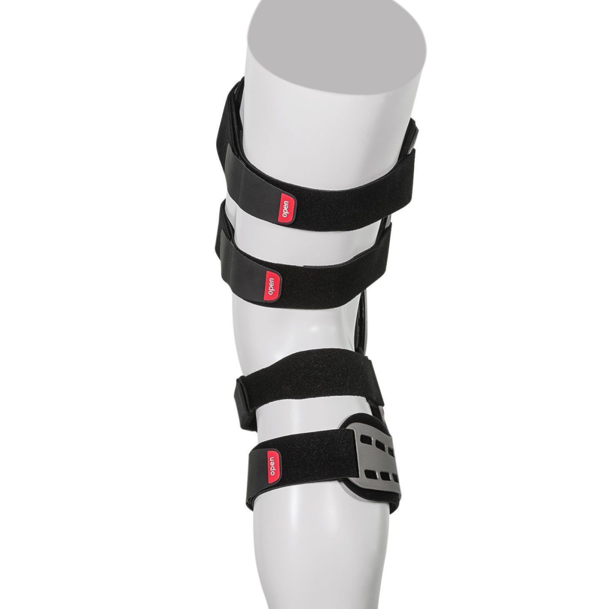 - Ортез смещает линию нагрузки с пораженного отдела коленного сустава, действуя по классическому 3-точечному принципу.