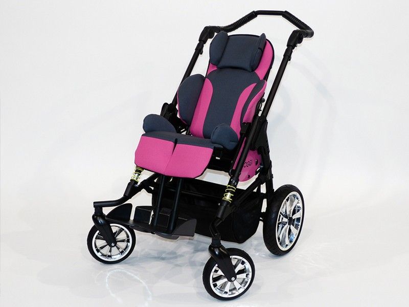 Bingo Evolution – специальное кресло-коляска, которое было разработано для деток с нарушением состояния опорно-двигательного аппарата, а также для больных ДЦП. Возраст пациентов, которые могут пользоваться этой коляской, 1-10 лет. Кресло Bingo Evolution удачно объединило в себе прекрасный комфорт и отличную функциональность. Оно в полной мере соответствует современным эстетическим характеристикам. В наличие имеется достаточно много самых разных аксессуаров, а также регулировок. Таким образом, даже независимо от того где находится ваш ребенок, на улице или в комнате, он всегда будет находиться в спокойном состоянии и комфортном положении. Благодаря новой коляске вы сможете обеспечить ему необходимую поддержку, а также в значительной степени облегчить нагрузку. Основные преимущества конструкции: угол наклона регулируется на 160 градусов. При этом в спинке также можно регулировать угол наклона. И делается это плавно в положение, которое будет зависеть от потребностей ребенка; система подвески является адаптивной и уникальной. Она позволяет в значительной мере сглаживать различные сложности, возникающие на пути по дороге, которая отличается неровностью. Дает возможность без усилий объезжать ямы и другие препятствия (бордюры, ступени и ямы); небольшие размеры, простота в складывании. Колеса большого размера. Они легко снимаются и отличаются комфортабельностью; сиденья устанавливаются в направлении, которое является противоположным движению. Есть возможность переставлять кресло таким образом, что родитель или опекун может видеть ребенка, что в значительно степени облегчает уход за ним. Коляска продается в базовой комплектации. Она создана в разных рамах: домашней, прогулочной. Таким образом, комплектация составляется с учетом потребностей ребенка.