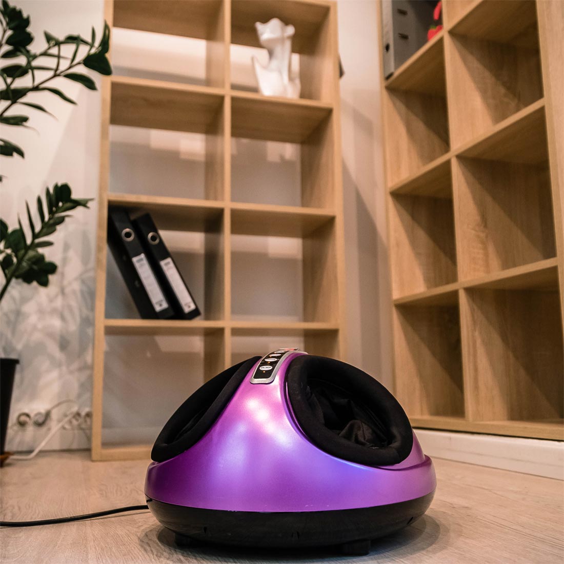 Массажер для ног оказывает комплексное массажное воздействие на стопы, расслабляет, снимает напряжение и избавляет от усталости. Принцип работы массажера основан на встроенных массажных роликах, акупунктурных пластинах и воздушно-компрессионных подушках.