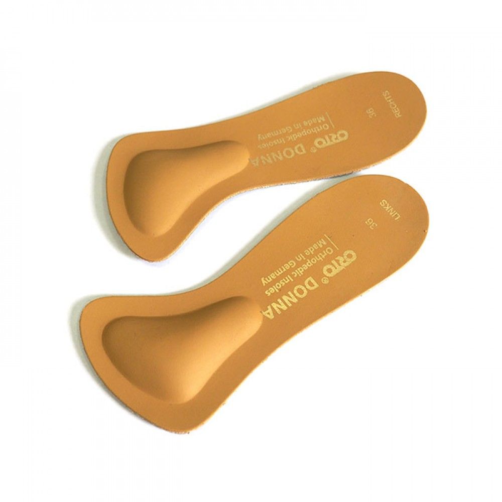 Бескаркасные ортопедические полустельки ORTO Donna предназначены для использования в открытой летней обуви, в том числе на каблуке более 7 см. Имеют метатарзальный валик Т-образной формы и небольшой смягчающий слой с выраженным рельефом на подошвенной поверхности. Покрытие стельки изготовлено из натуральной кожи.