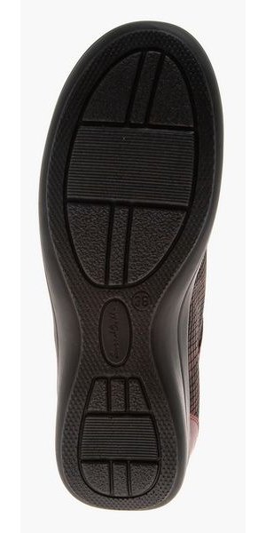 - Нескользящая подошва из полиуретана цельнолитого типа обеспечена небольшим подъемом в области пятки.