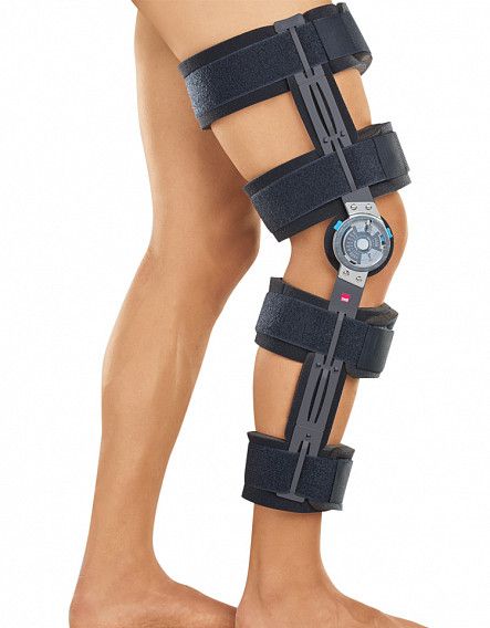 Ортез коленный регулируемый – medi.ROM cool – предназначен для иммобилизации коленного сустава после травм и в послеоперационном периоде. Ортез состоит мягкой подкладки, двух стабилизирующих металлических пластин с моноцентрическими шарнирами и четырех ремней. Мягкая подкладка под ремнями выполнена из вспененного полиуретана, что позволят достаточно сильно натянуть ремни (с целью иммобилизации), не причиняя пациенту дискомфорта.