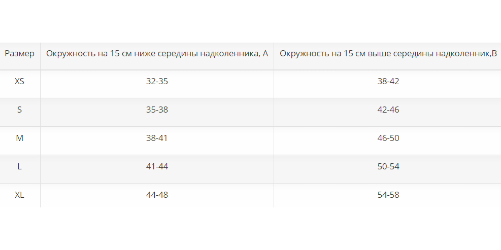 Подбор размера коленного ортеза: